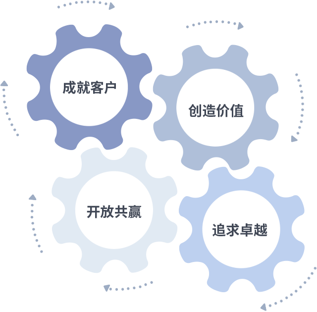 成就客户是一切决策的出发点,创造价值是衡量所有工作的标准,追求卓越是XK星空·(体育中国)做事做人的态度,开放共赢是XK星空·(体育中国)的格局也是最终的结果。价值观的齿轮环环相扣,推动着组织里的每个人不断向前。